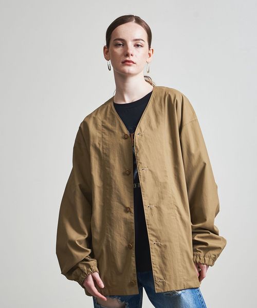 ボリューム感の有る絶妙なシルエットのノーカラーブルゾン