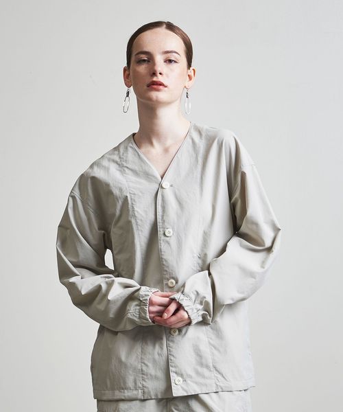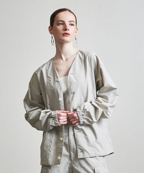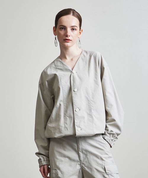 ボリューム感の有る絶妙なシルエットのノーカラーブルゾン