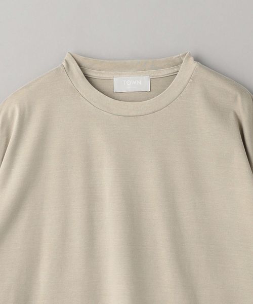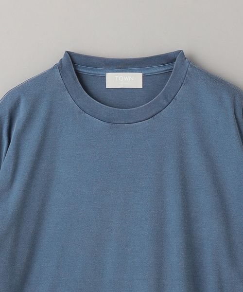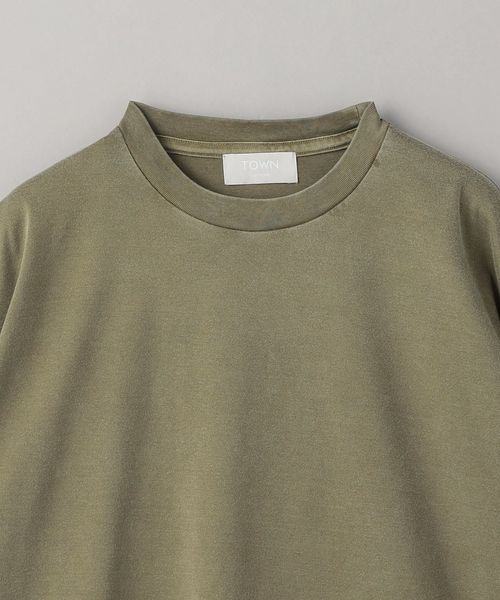 クリアでキレイめな表情の生地をガーメントダイすることにより、褐色の中にも微光沢がある上品な印象に仕上がったクルーネックTシャツ。