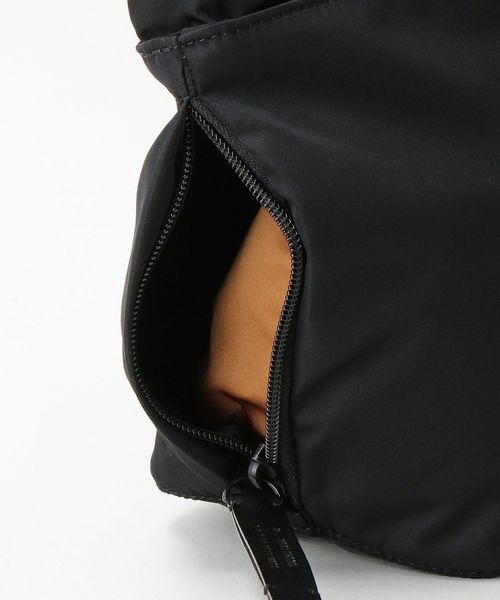 ハンドル、ファスナー両サイドのループにマットな質感の素材を使用したラグジュアリー感あるデザイン。