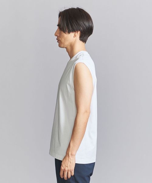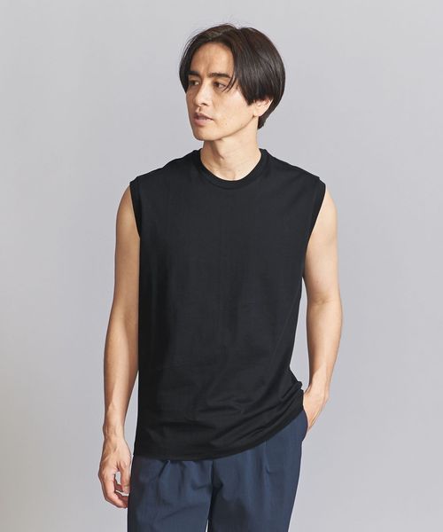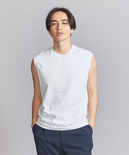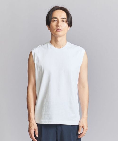一枚着・レイヤード使いに重宝するベーシックなノースリーブTシャツ。