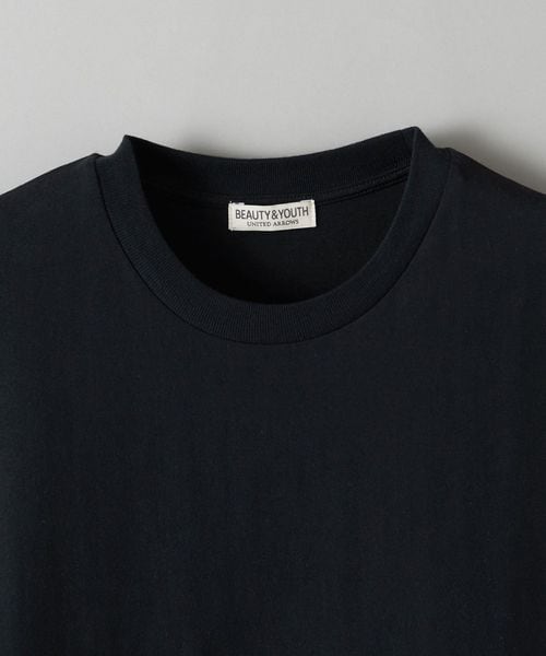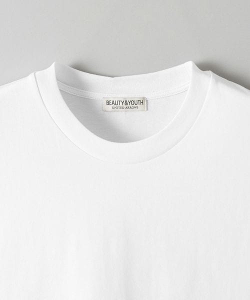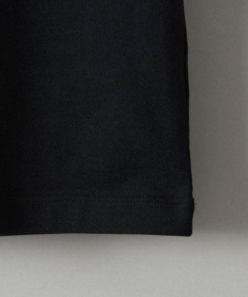糸の段階でガス焼きを施し毛羽を取り除いて編み立てた、クリアな表情が特徴のコットン100%天竺素材を使用。