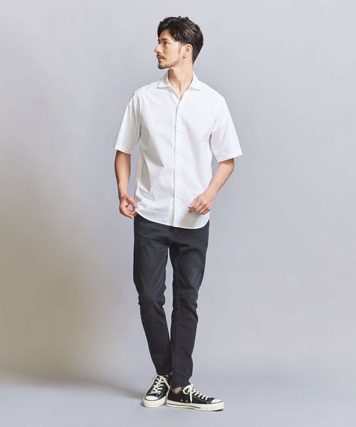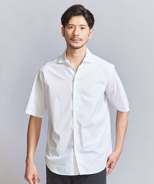 【WARDROBE SMART】クリアポプリン ワイドカラー スキッパーシャツ