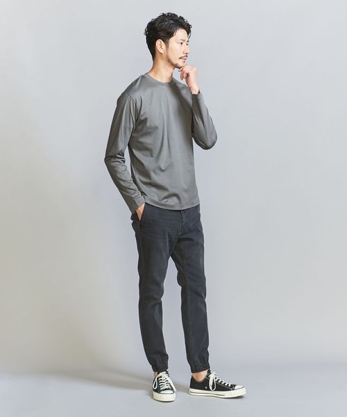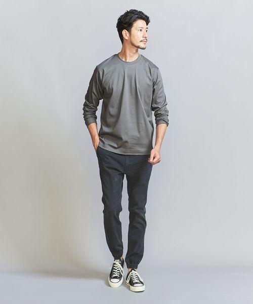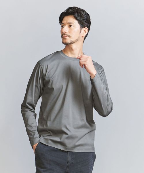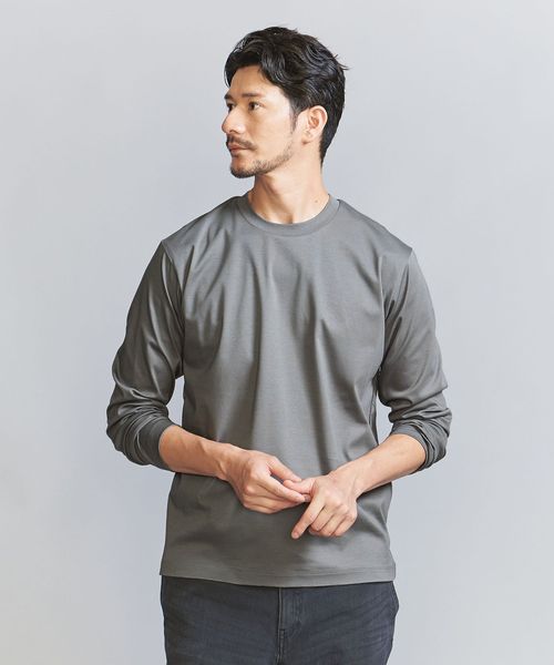 1枚で着ていただくのはもちろんのこと、すっきりとしたシルエットのジャケットとの相性も良く、ジャケット用のTシャツとしてもおすすめです。