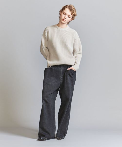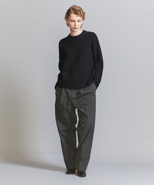 立体的な畦編みとニットらしい品のある雰囲気がおすすめです。