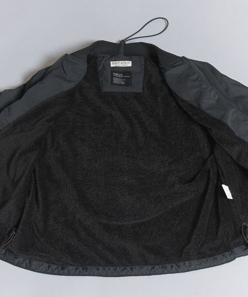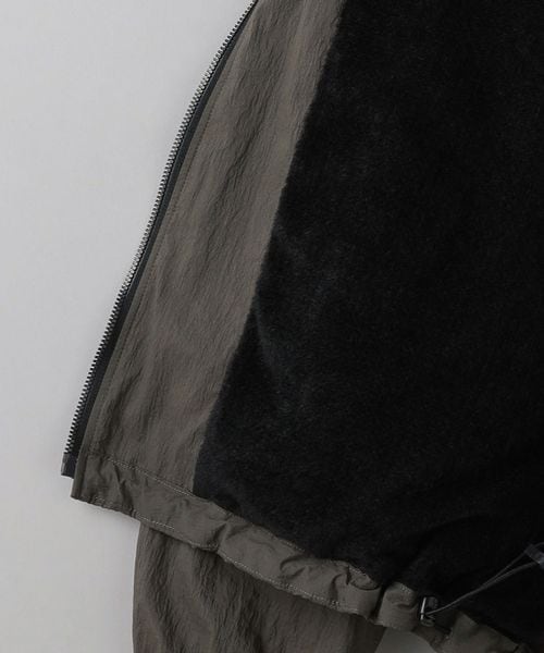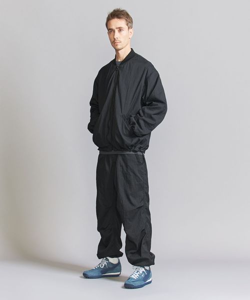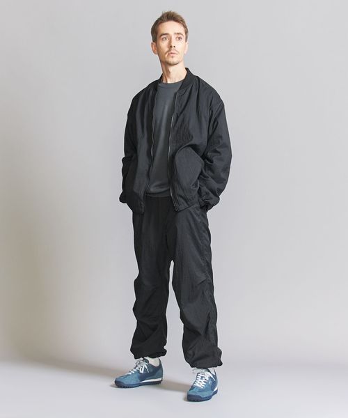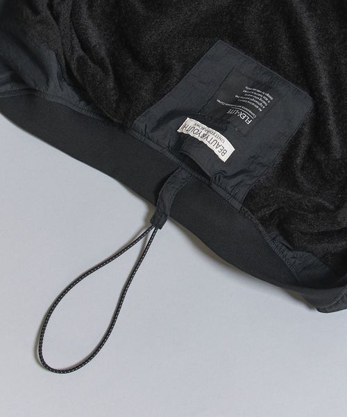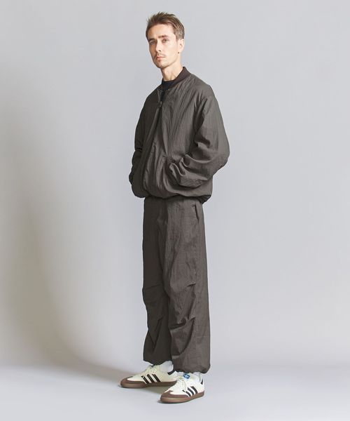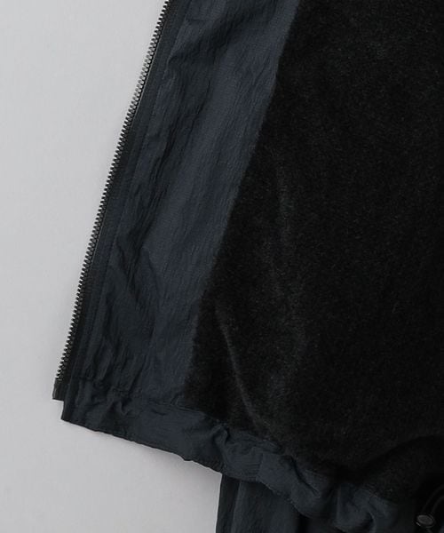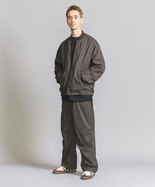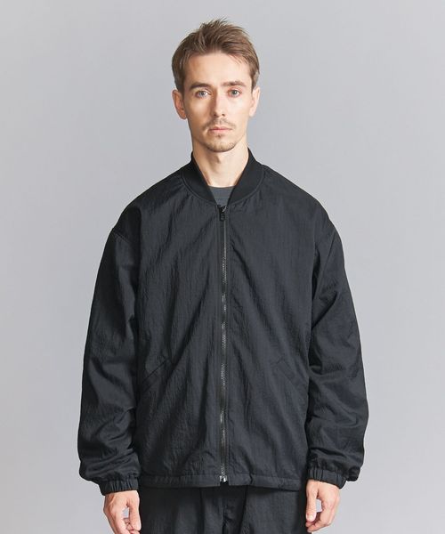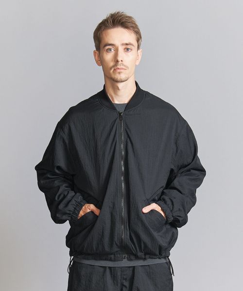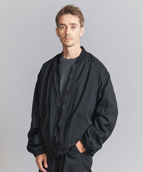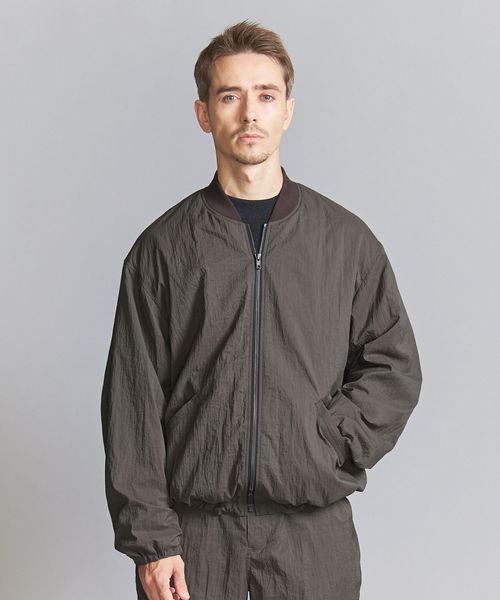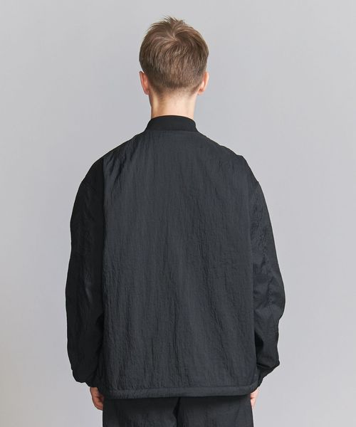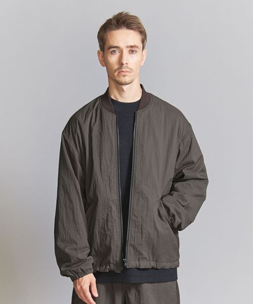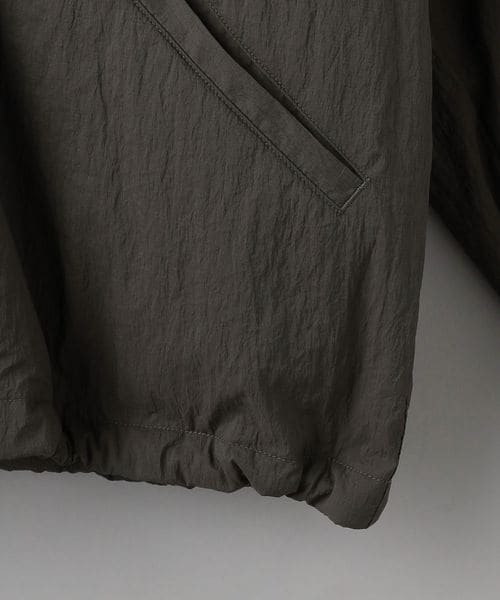 表地ナイロンのシワ感を際立たせる為、極力ディティールレスなシンプルなリブブルゾンに仕上げました。