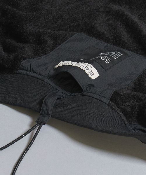 裾にはドローコードを搭載、お好みに合わせて裾を絞ってシルエット変化いただけます。