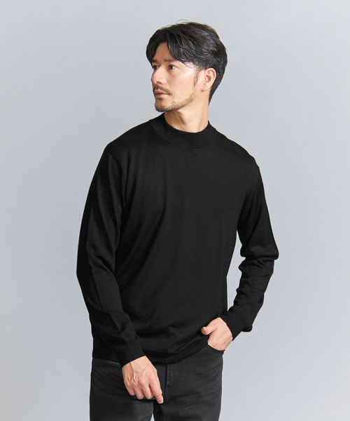 ジャケット着用時に首が直接ジャケットに触れにくいように絶妙な高さに設計されたジャケットネックがポイントです。