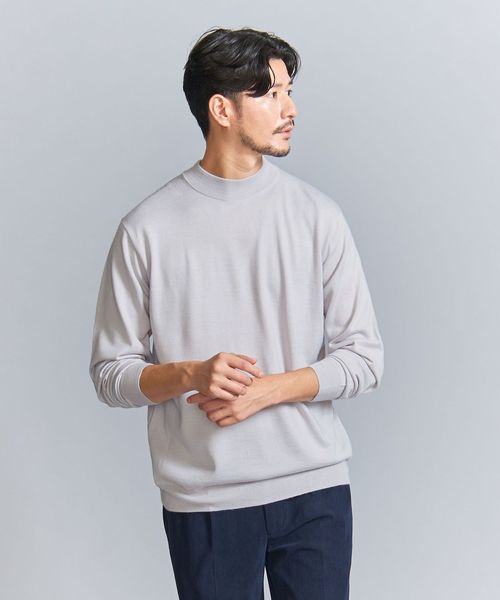 マシーンウォッシャブル対応。ファインゲージウールミックスジャケットネックニット