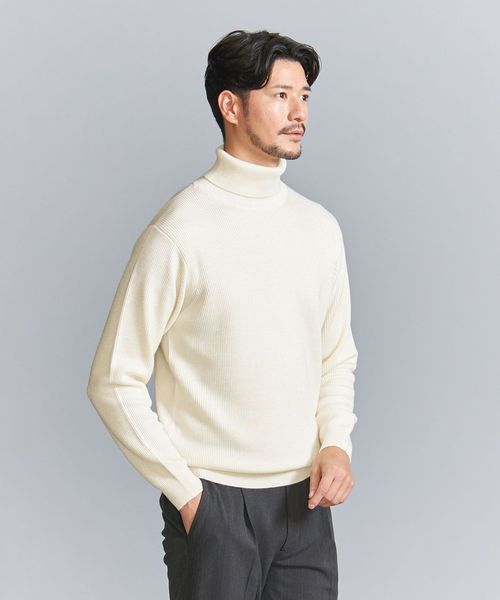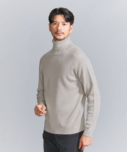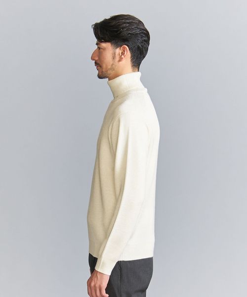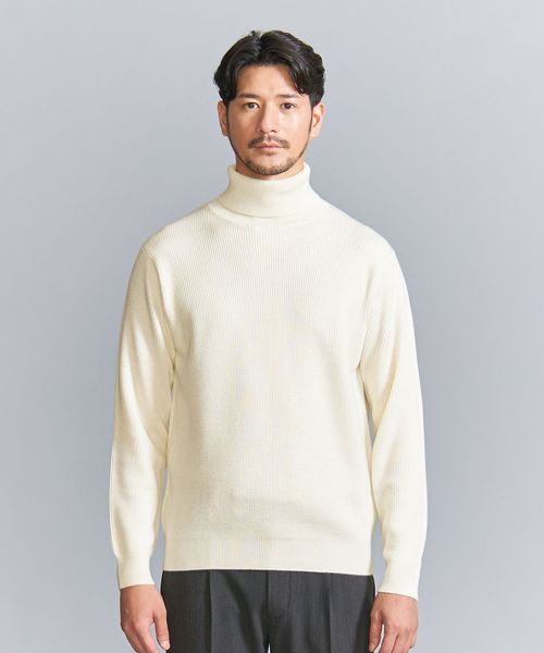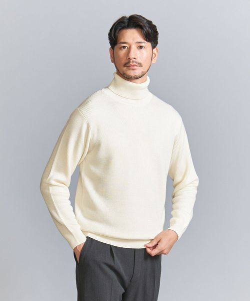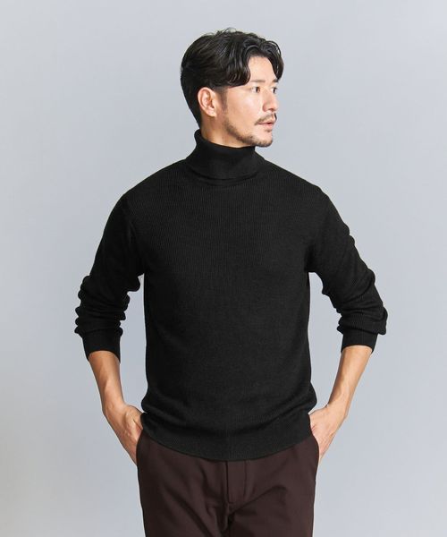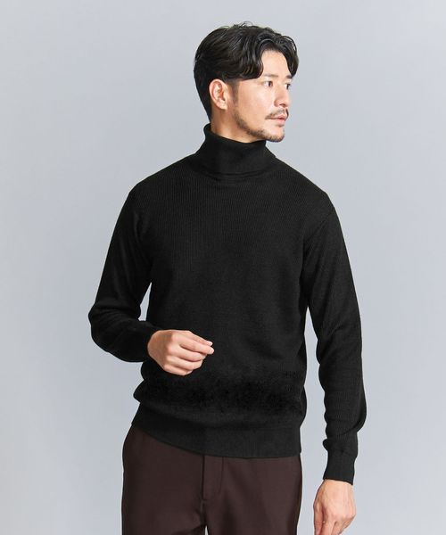 マシーンウォッシャブル対応。ウールミックス畦タートルネックセーター