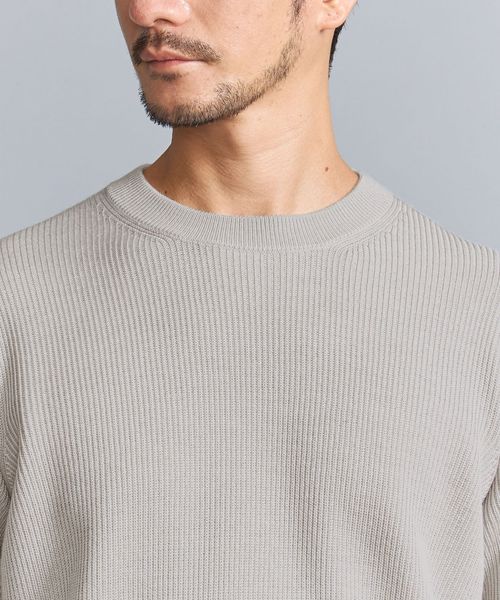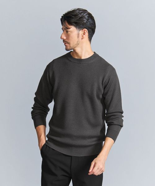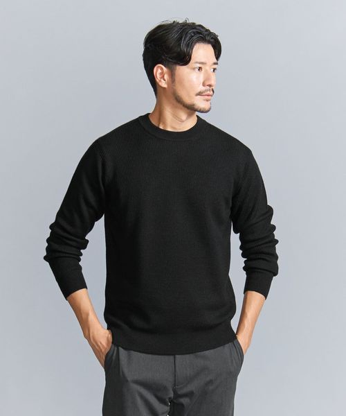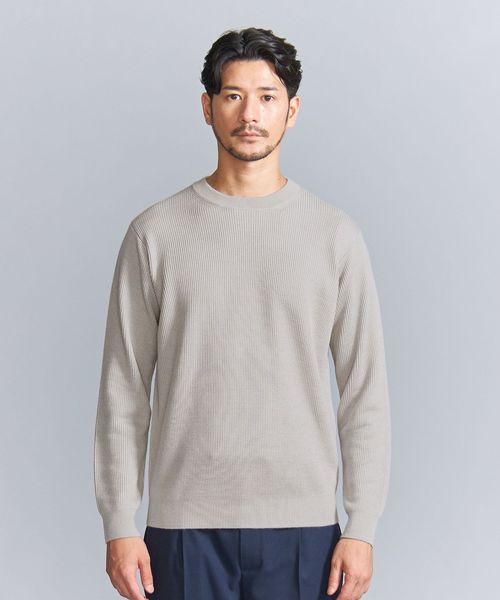 マシーンウォッシャブル対応。ウールミックス畦クルーネックセーター