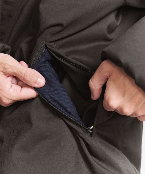 都市生活に馴染む洗練されたデザインと過不足ない機能性を併せ持つ、「小松マテーレ」ダウンジャケット。