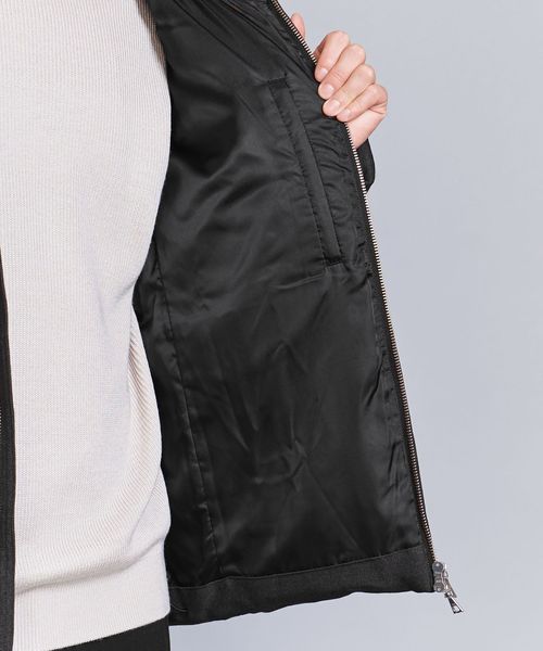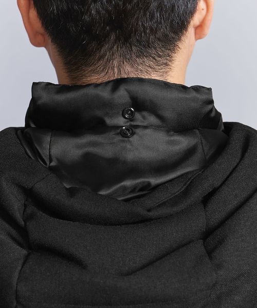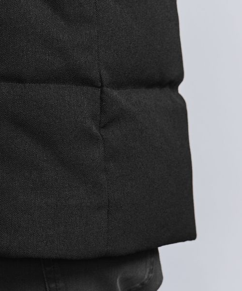 スマートなシルエットになるように、脇部分にはダウンを入れずに中綿を挟みボリュームを抑えています。