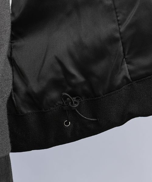 コンパクトな身頃に、立体的な衿元、フードでメリハリのあるシルエットを構築しています。