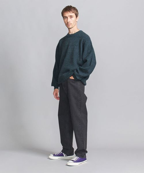 ヘアリーな素材感で1枚でも着映えするオーラあるトップスのため、シンプルなスラックスや合繊系イージパンツとのスタイリングがおすすめです。