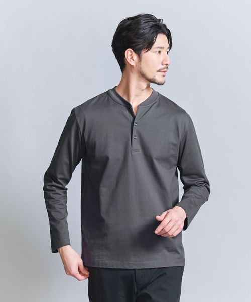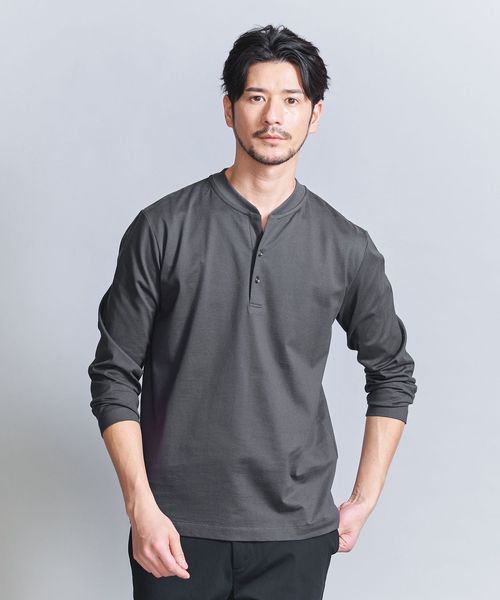 【WEB限定 WARDROBE SMART】クリア ガスコットン ヘンリーネック カットソー【抗菌・防臭】