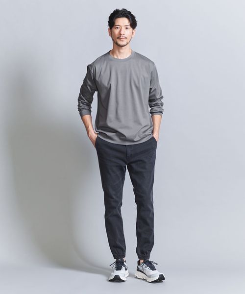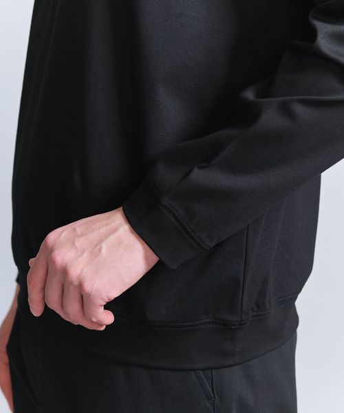 キレイ目な印象で着れるように衿、袖口、裾のリブ部分をボディと同じスムース素材を採用しています。