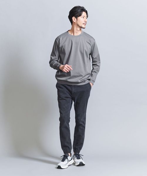 スウェットライクなデザインによりTシャツよりも、1枚着としての存在感が感じられるトップスとしてお勧めです。