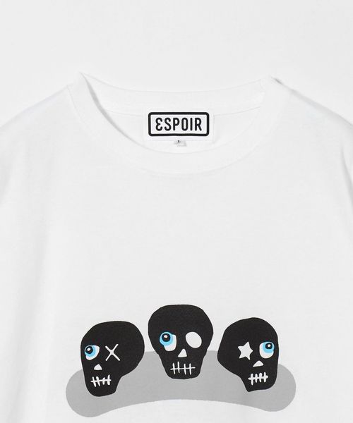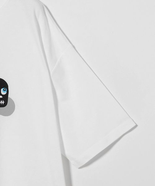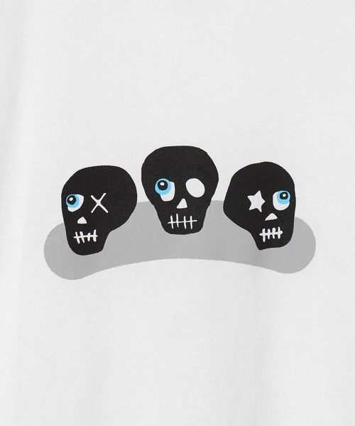 フロントに配された遊び心を感じるスカルモチーフのグラフィックが目を引くTシャツです。