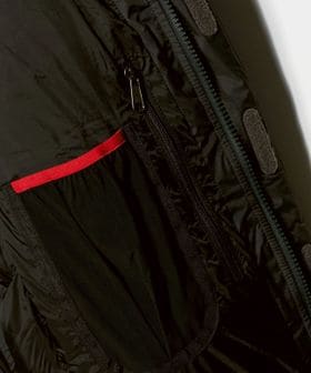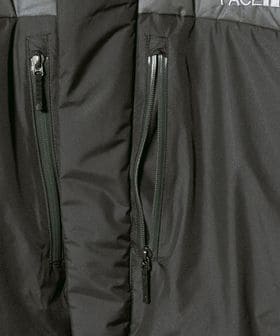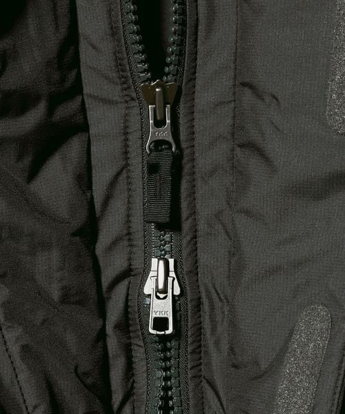 中わた入りの内襟やフロントのダブルフラップなどでコールドスポットを軽減。