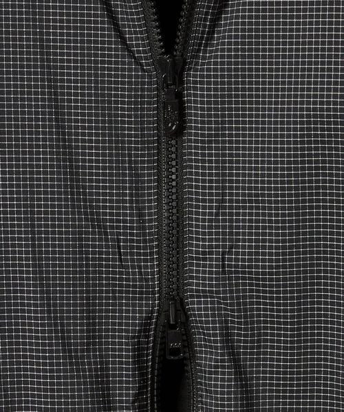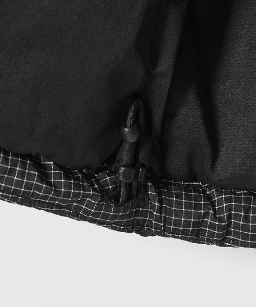 生地にははっ水加工を施し、多少の雨にも対応。中わたには、通気性とストレッチ性のあるスリット入りの化繊わたを採用。