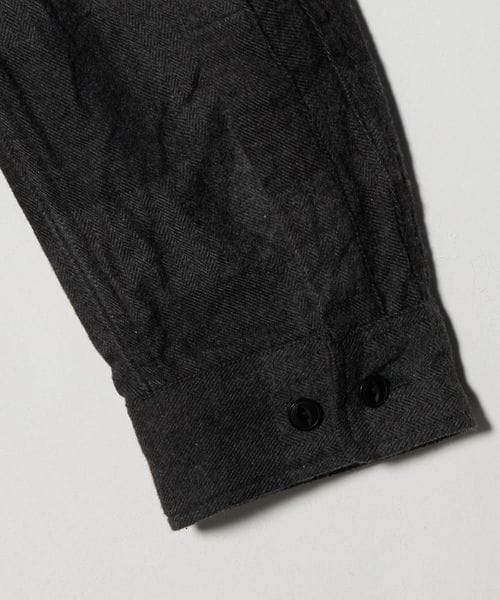ヘリンボーン織のフランネル素材を使用し、柔らかく温かみのある風合いと、落ち着いたチェック柄が秋冬らしいムードを演出します。