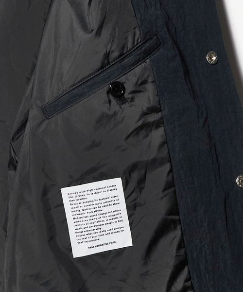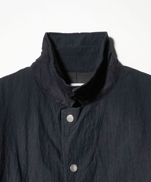 襟裏にはコーデュロイ素材を使用し、フック仕様で立てて着用することも可能。