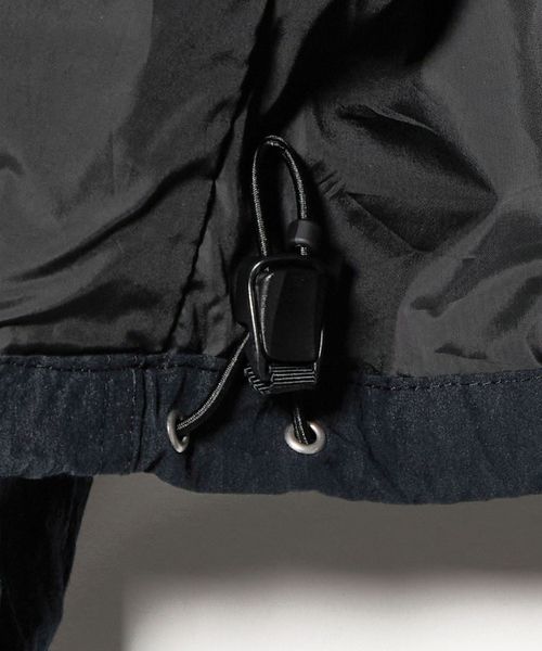 フロントはスナップボタン、両サイドにはジップポケットを配置し、裾にはドローコードを備えるなど、細部にまでこだわりが光ります。