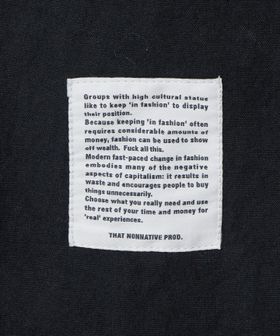 洋服とは、人生を投影するための道具である。<nonnative>は、そんな普遍的なアーカイヴ(道具)の中から、用途に合った生地・丈夫な縫製・実用的なディテールといった「機能」を抽出。時流にあったシルエットに再編集する。