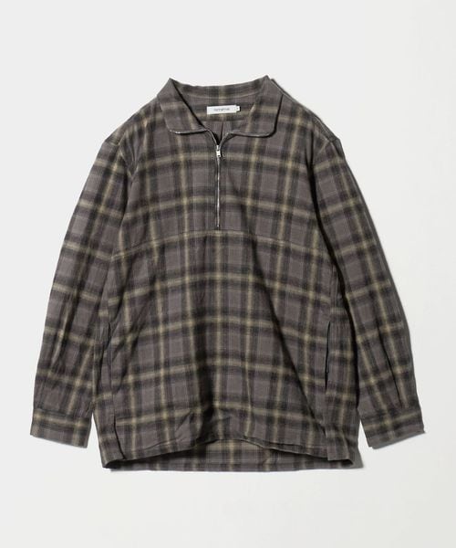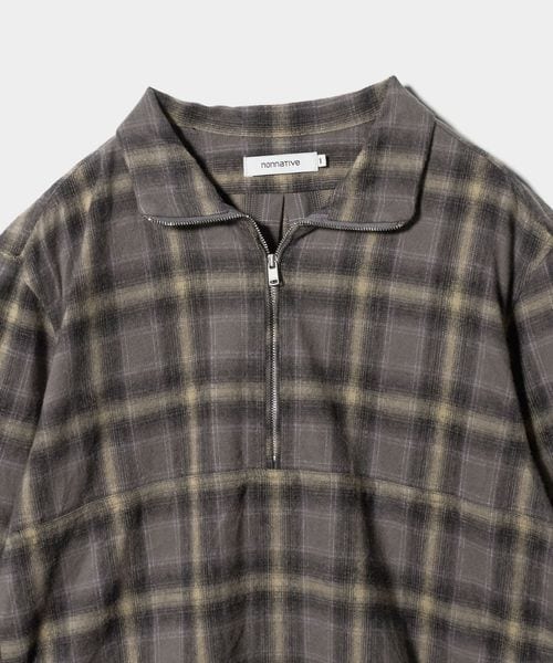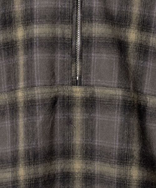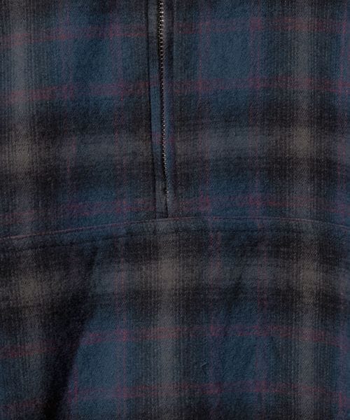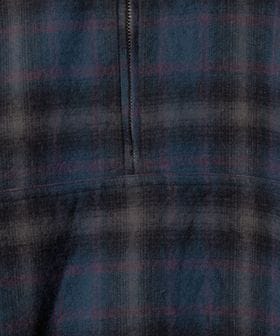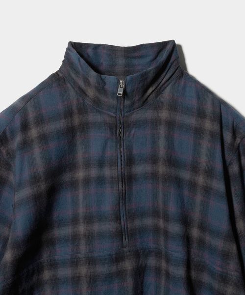 オンブレチェック柄がクラシックな雰囲気を醸し出しつつ、スタンドカラーとハーフジップのディテールがスポーティな印象をプラス。