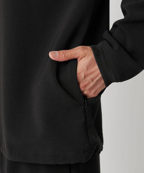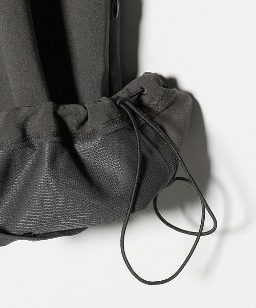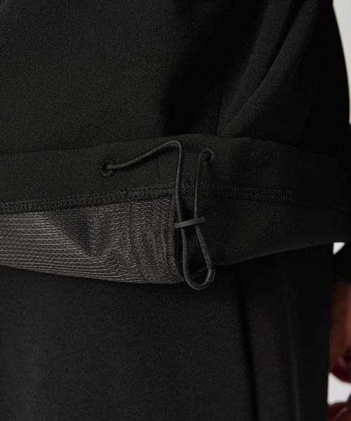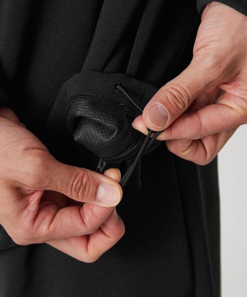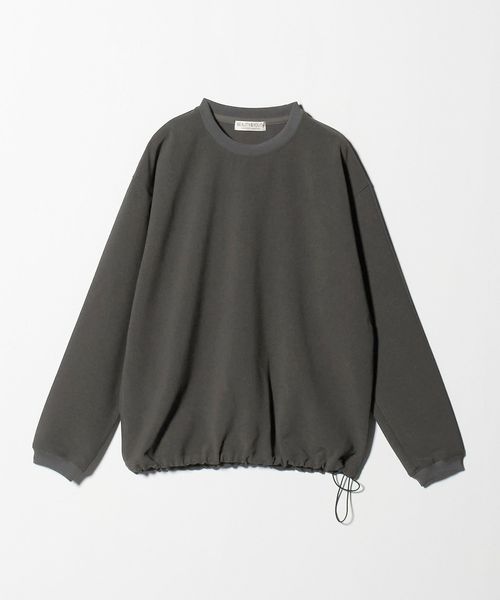 裾にスピンドルとストッパーを搭載し、シルエット変化が付けられるアジャスト機能を持ったクルーネックトップス。