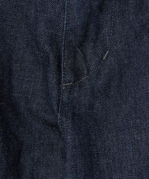 自然なムラ感と深みのある色合いが特徴的な綿とポリエステルをブレンドしたデニム生地を使用したパンツ。