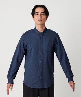 ビジネスにもカジュアルにも対応する、伸縮性のあるボタンダウンシャツ。