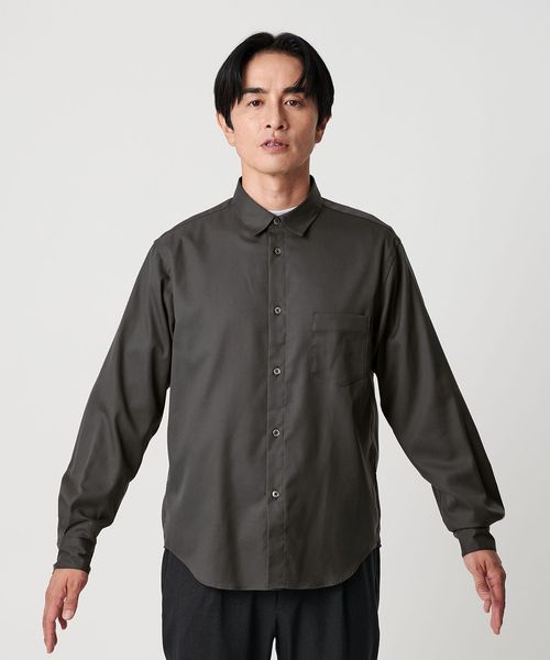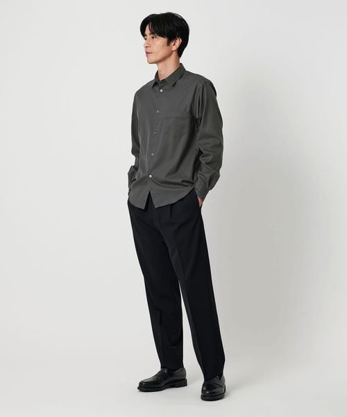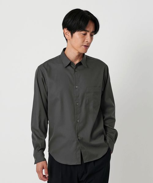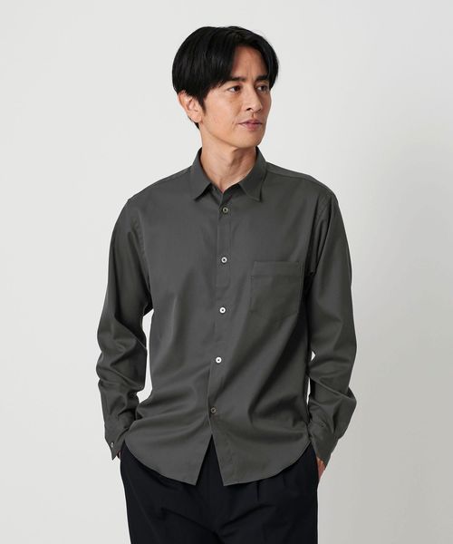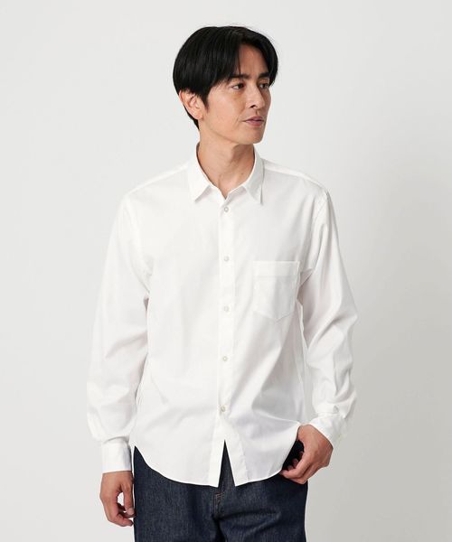 季節を問わず、カーディガンや軽アウターとのレイヤードも楽しめる、着回し力抜群のスリムシャツです。