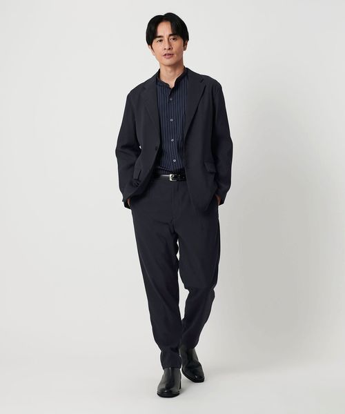 同素材のテーパードスラックスと合わせたセットアップがおすすめです。
