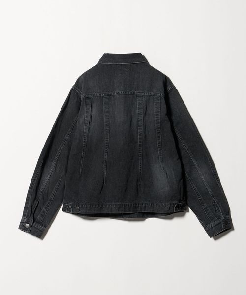 全体的に丸みのある独特のAラインシルエットが、ベーシックなデニムジャケットを個性的なアイテムへと変化させています。