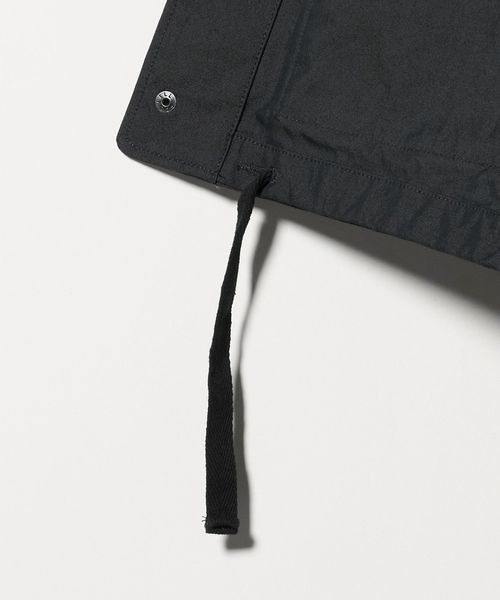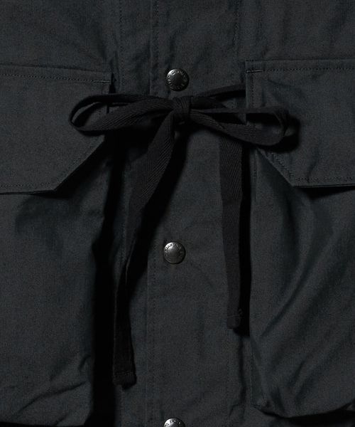 フロントに配されたマチ付きの大容量ポケット、スナップボタンやドローコードなど、アクティブなディテールを多数装備したフィールドベスト。