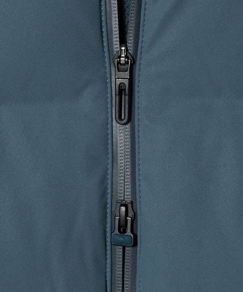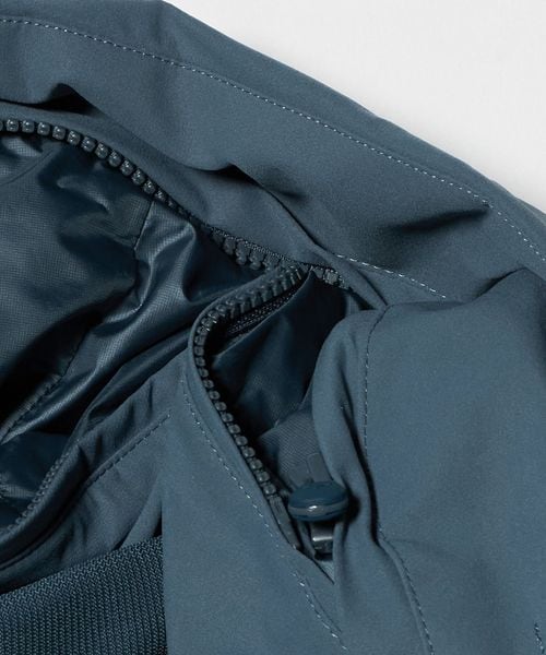 フロントジッパー部分に採用されたデュアルジップベンチレーションは、2列のジッパーとその間に配置されたメッシュ生地により衣服内に外気を取り込み、ジャケット内にこもりやすい不快な熱や湿気を逃がすことが可能。