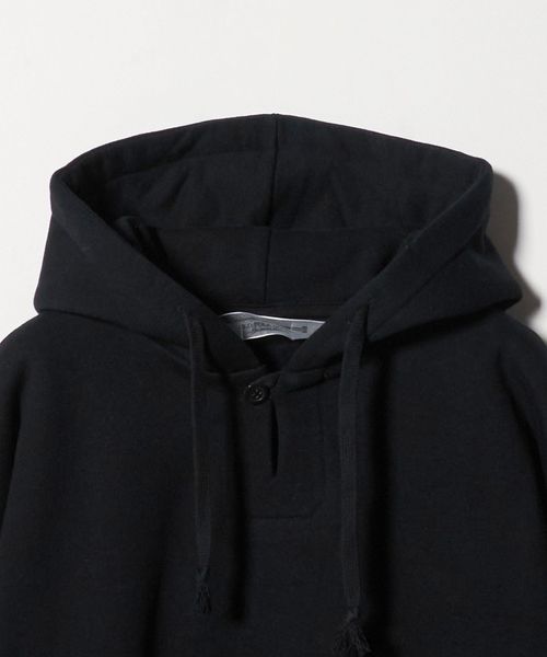 肩の力を抜いた大人のカジュアルスタイルにぴったりな、スキッパーデザインのスウェットフーディ。