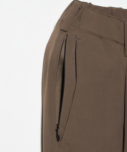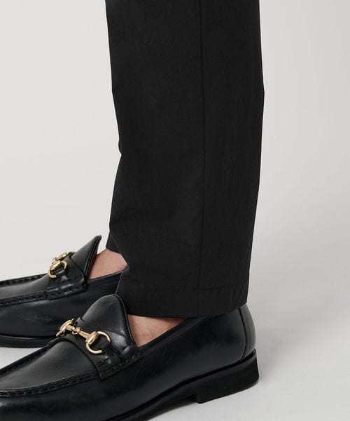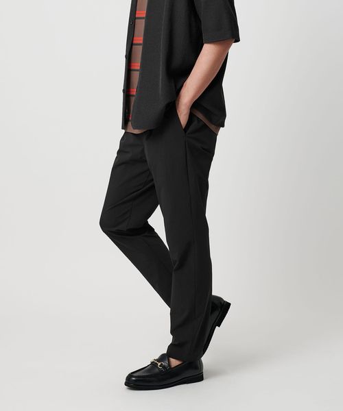 ウエスト回りは程よいゆとりを確保し、膝から裾に向かってスリムラインになっていくテーパードシルエットを構築。