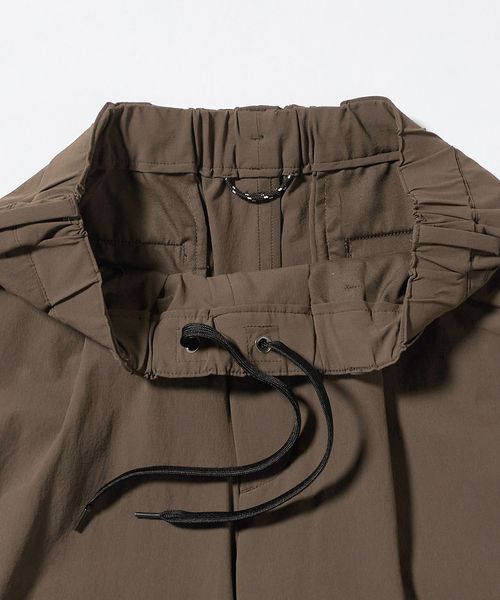 ハリ感がありながらも快適に過ごせる伸縮性に加え、撥水性もあり雨の日もおすすめのアイテムです。