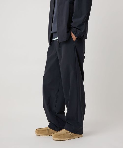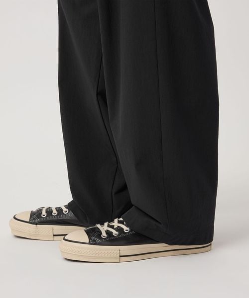 ヒップから膝にかけてかなりゆとりのワイドシルエットですが、裾に向かって程よいテーパードを掛けているので、合わせやすい、また、こなれて穿けるワイドパンツとしてお勧めです。
