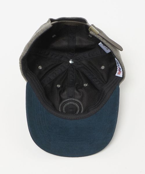 ネイビーのフェルトアップリケをフロントに配した、存在感のあるベースボールキャップ。