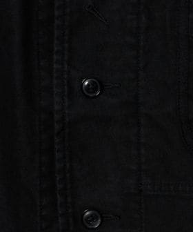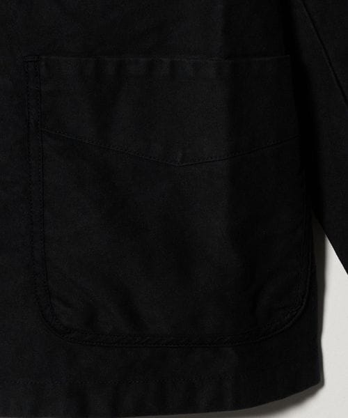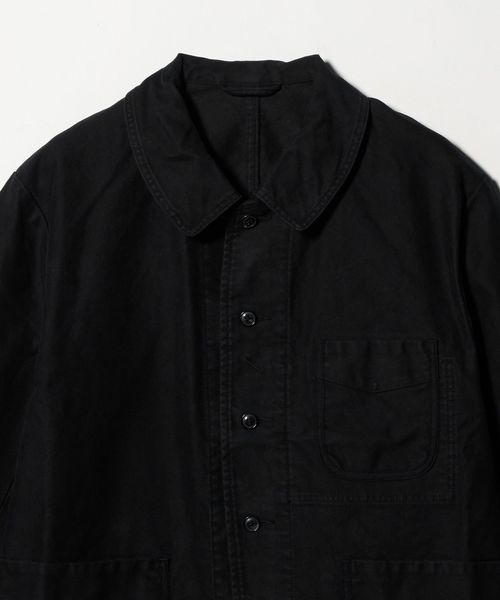 上質な光沢と深みのある風合いが魅力の、モールスキン素材を使用したフレンチカバーオールジャケット。