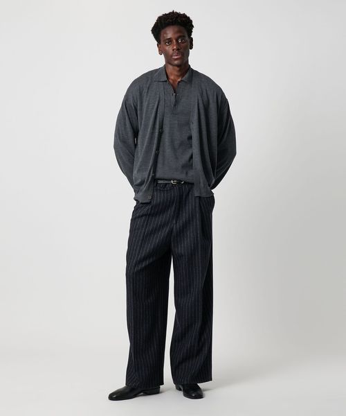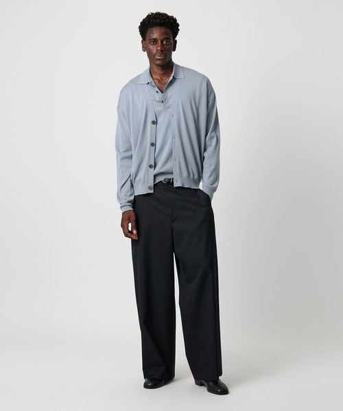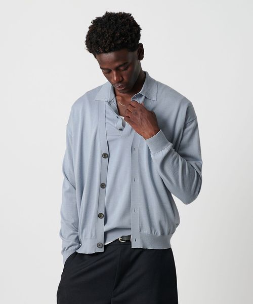 同素材・同カラーの半袖ニットポロとのアンサンブルスタイルもおすすめ。