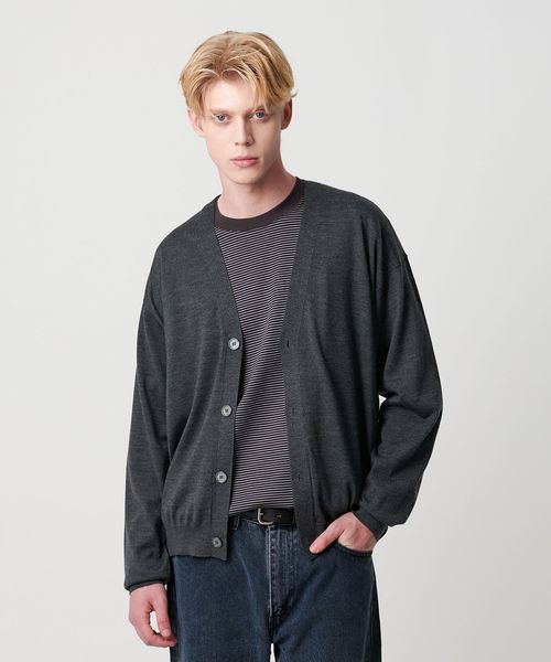 ウォッシャブルウールを使用した、Vネックカーディガン。