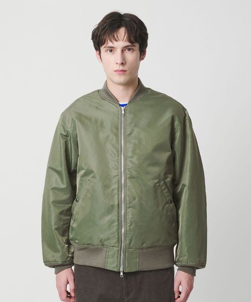 フライトジャケットの定番「MA-1」をベースに、ディテールを削ぎ落としたミニマルなデザインで再構築。