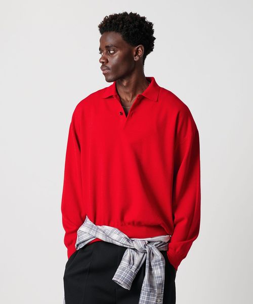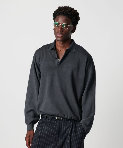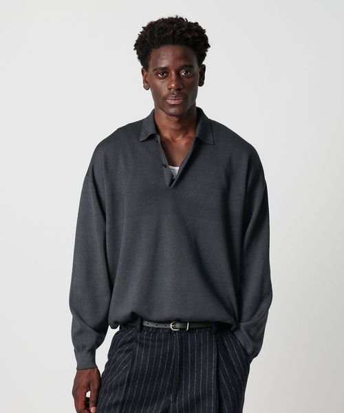 <OWNESS> SNOW WASH スムース ニット ポロシャツ