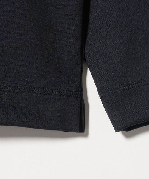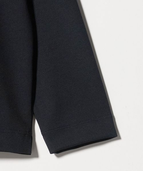 ネックはリブ仕様、袖口と裾は3本針で丁寧に仕上げられ、サイドスリットやセンターバックシームなど、ブランドらしいディテールが随所に光ります。