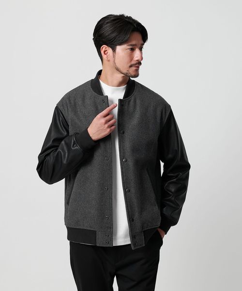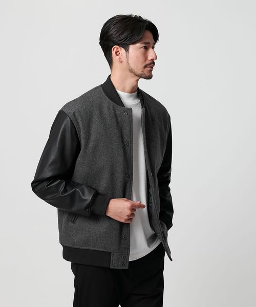 シンプルな大人が着れるヴァーシティジャケット、プレーンなディテールですのでコーディネートに取り入れ易く、シーズンを問わずにデイリーウェアとして重宝する一枚です。